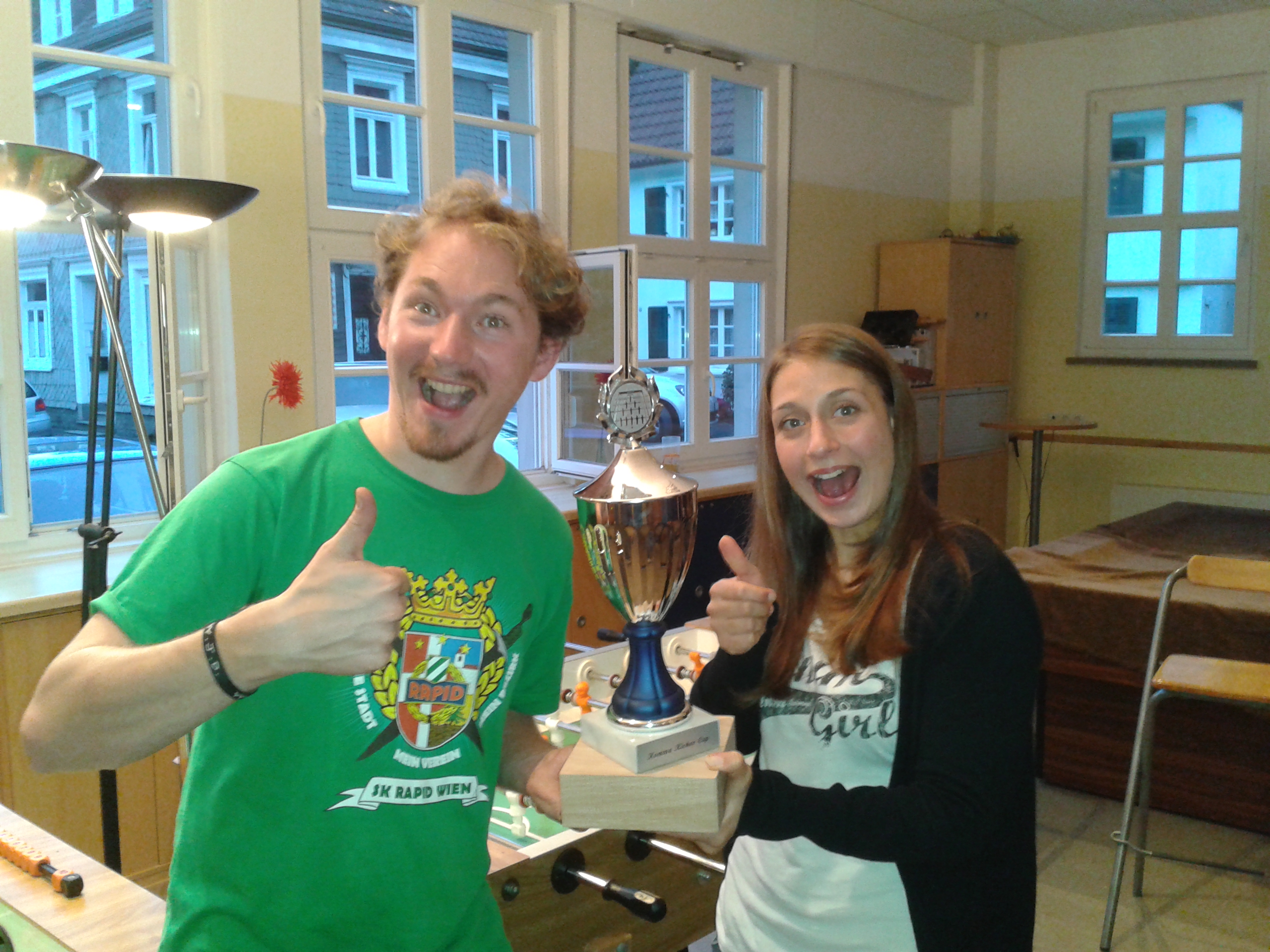Am Samstag, den 06.09.2014, fand der alljährlich Kom’ma Kicker Cup statt. In diesem Jahr kämpften vier Teams um den begehrten Titel. Für das Finale qualifizierten sich Alexandra/Kai sowie Anja/Tim. Die Finalpartien entschieden dann Anja/Tim eindeutig für sich und sind somit die Sieger des KKC 2014.