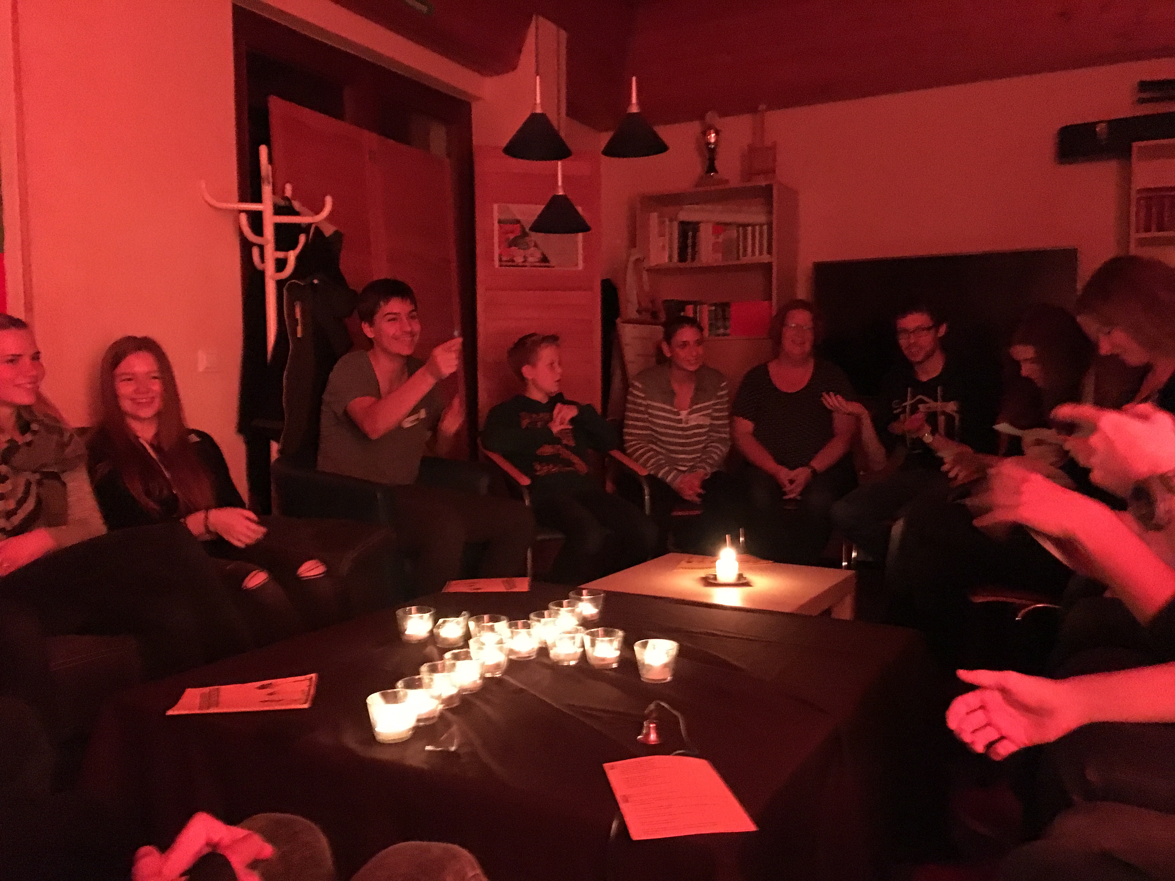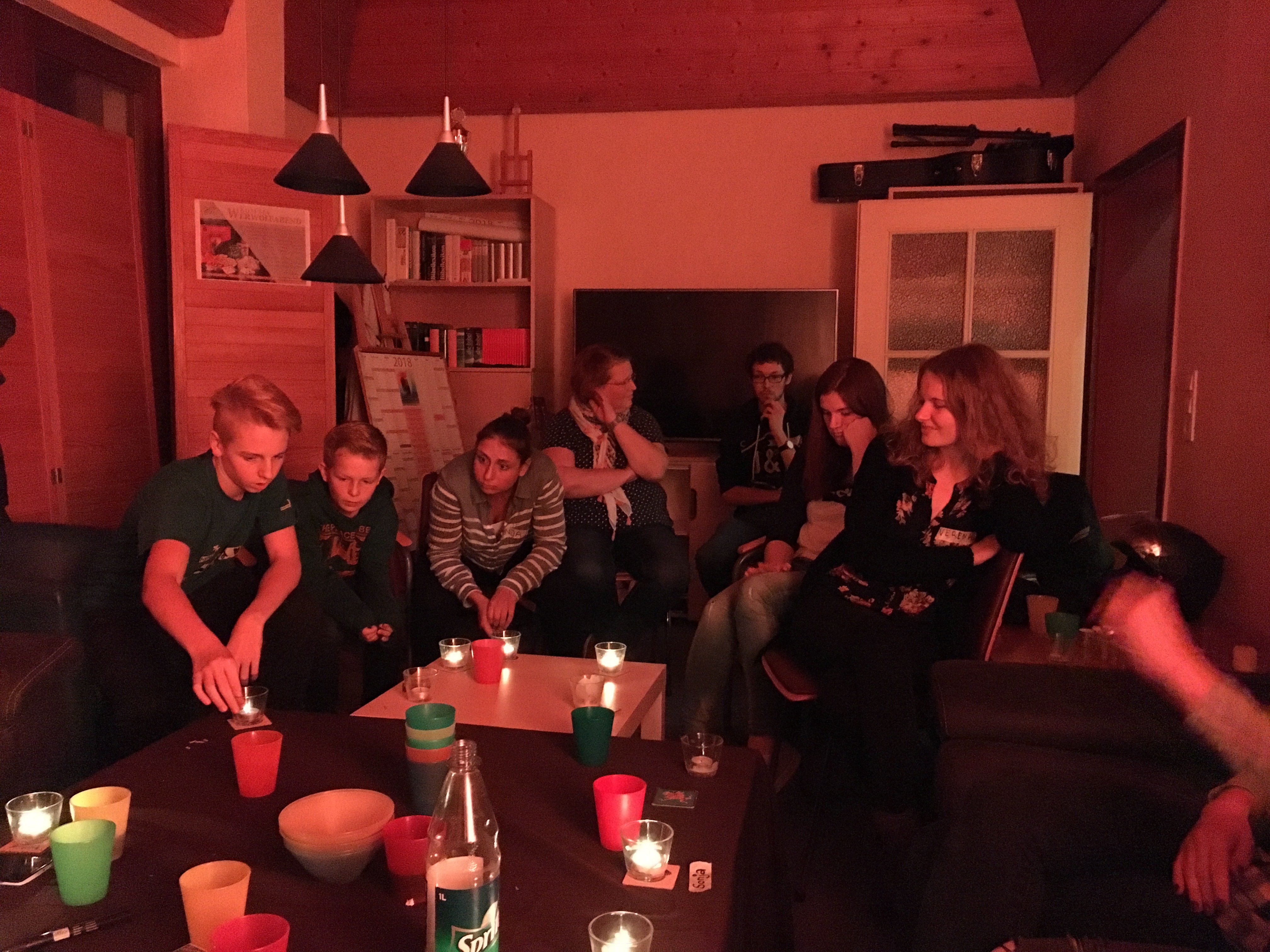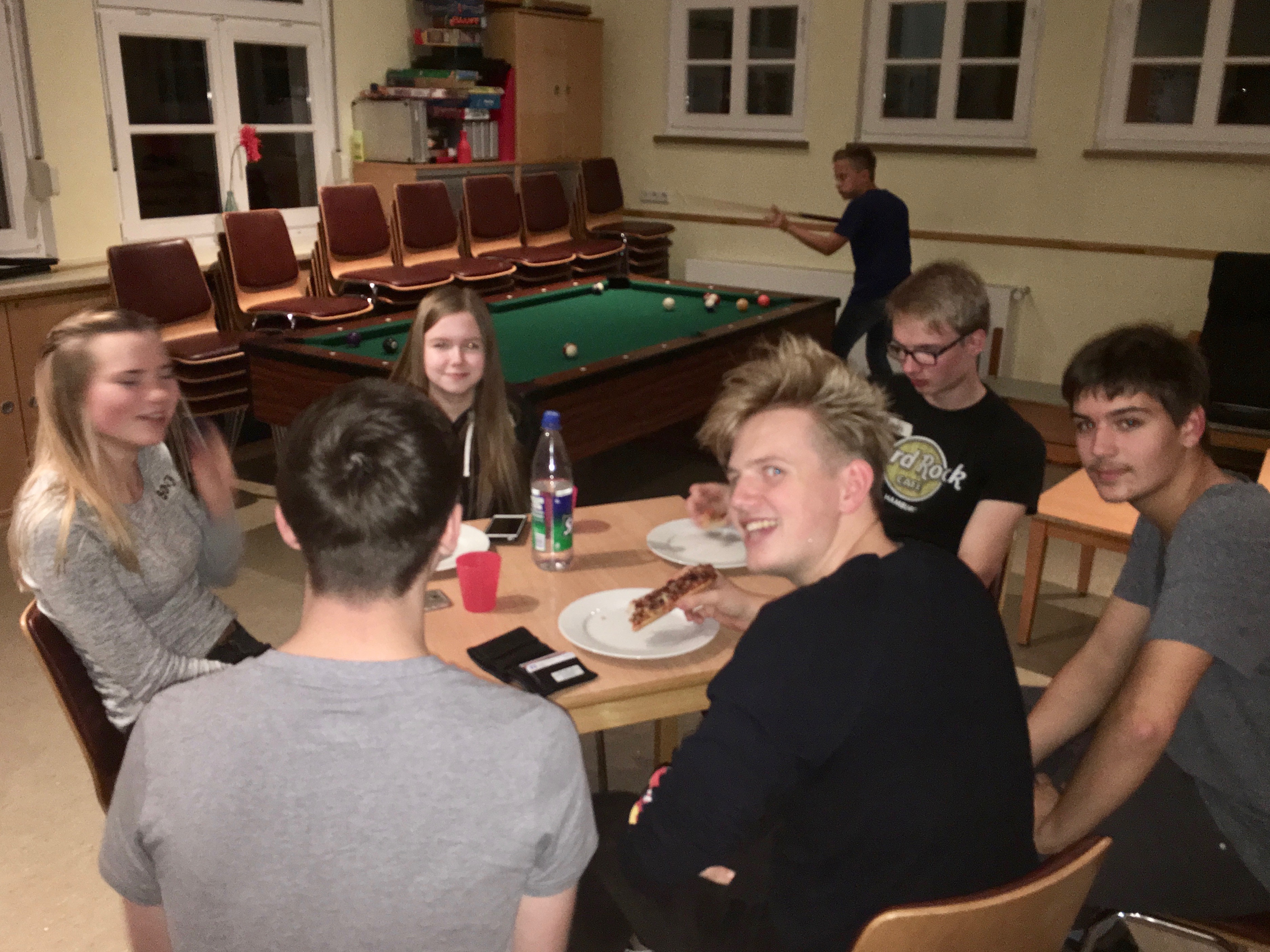 Parallel zum Werwolfabend gab es für die Jugendlichen Gelegenheit, andere Spiele zu spielen, gemeinsam zu essen oder sich einfach auszutauschen. Selbst nachdem Kom’ma um 21 Uhr mit dem Abendabschluß offiziell zu Ende war, blieben einige noch länger im Gemeindehaus und spielten zwei weitere Zusatzrunden.
