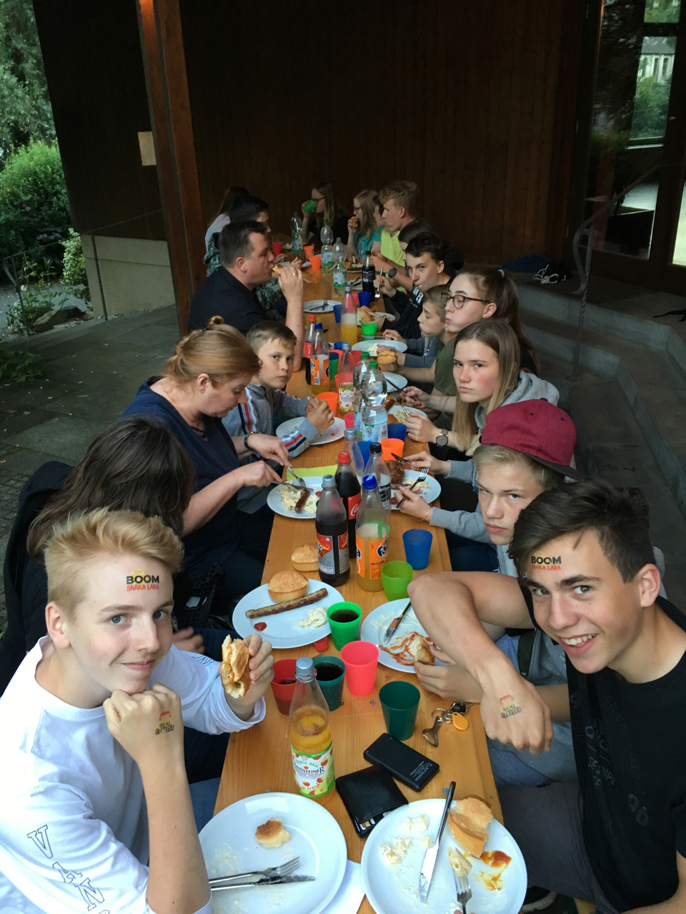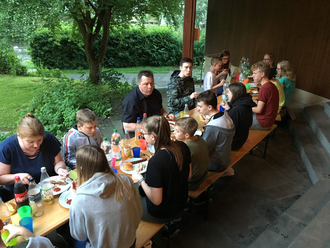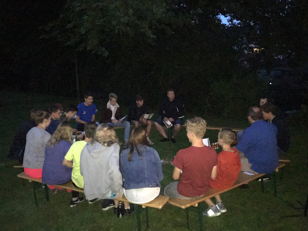Nach etwa anderthalbstündiger Wanderung kamen Teilnehmer und Mitarbeiter dann hinter dem Gemeindehaus zum gemeinsamen Grillen zusammen. Mit über dreißig Teilnehmern und Mitarbeitern des CVJM war die dort gelegene Wiese sehr belebt! Der Himmel blieb an diesem Tag nach den Gewittern der vorhergegangenen Woche klar und so konnte bei angenehmen Temperaturen nach dem gemeinsamen Abendabschluss unter freiem Himmel noch „Die Werwölfe von Düsterwald“ gespielt werden. Für alle, die mitgezeltet hatten, gab es zum Abschluss am nächsten Morgen noch ein gemeinsames, kleines Frühstücksbuffet.