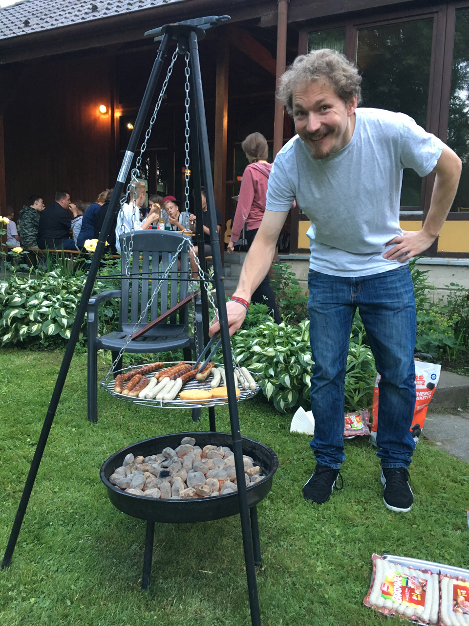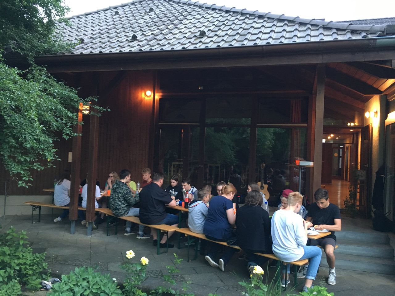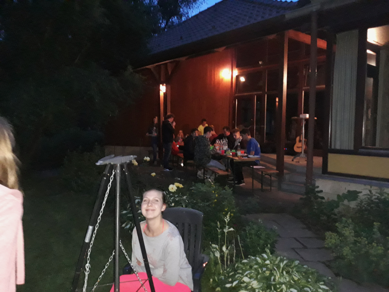 Nach etwa anderthalbstündiger Wanderung kamen Teilnehmer und Mitarbeiter dann hinter dem Gemeindehaus zum gemeinsamen Grillen zusammen. Mit über dreißig Teilnehmern und Mitarbeitern des CVJM war die dort gelegene Wiese sehr belebt! Der Himmel blieb an diesem Tag nach den Gewittern der vorhergegangenen Woche klar und so konnte bei angenehmen Temperaturen nach dem gemeinsamen Abendabschluss unter freiem Himmel noch „Die Werwölfe von Düsterwald“ gespielt werden. Für alle, die mitgezeltet hatten, gab es zum Abschluss am nächsten Morgen noch ein gemeinsames, kleines Frühstücksbuffet.