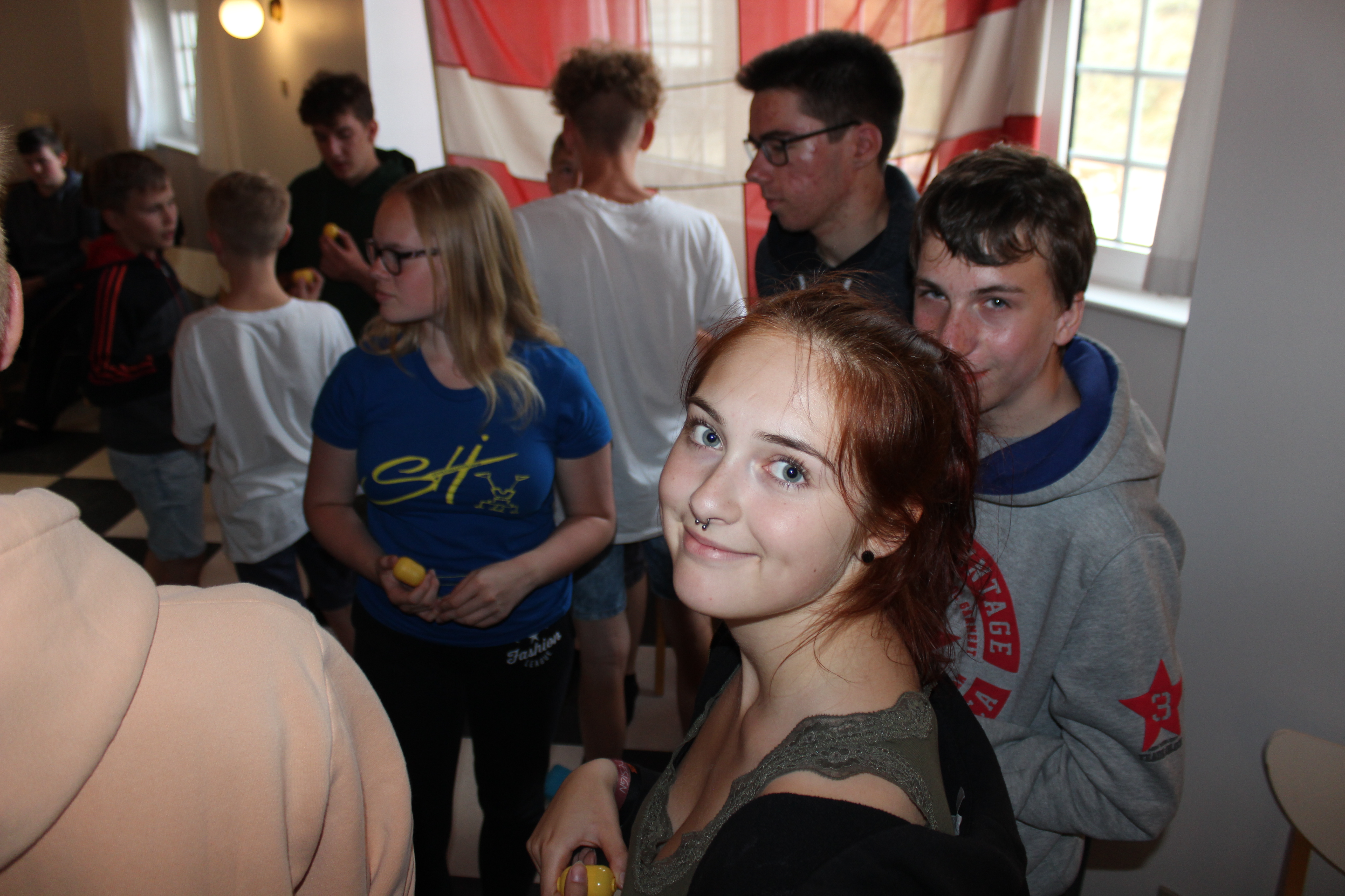 Nach einer Erkundungstour durch Blokhus und die Dünen wurden alle Zimmer von den Teilnehmern bezogen. Am Nachmittag spielten viele Jugendliche Kicker oder Tischtennis, gingen durch die Dünen bis zum Meer – es ist übrigens traumhaft schön – und nach dem Abendessen gab’s unseren Dänemark-Kennenlernabend mit vielen lustigen Spielen. Nach dem Abendabschluss sind die meisten müde und zufrieden ins Bett gefallen. Ein guter Start in die kommenden zwei Wochen!