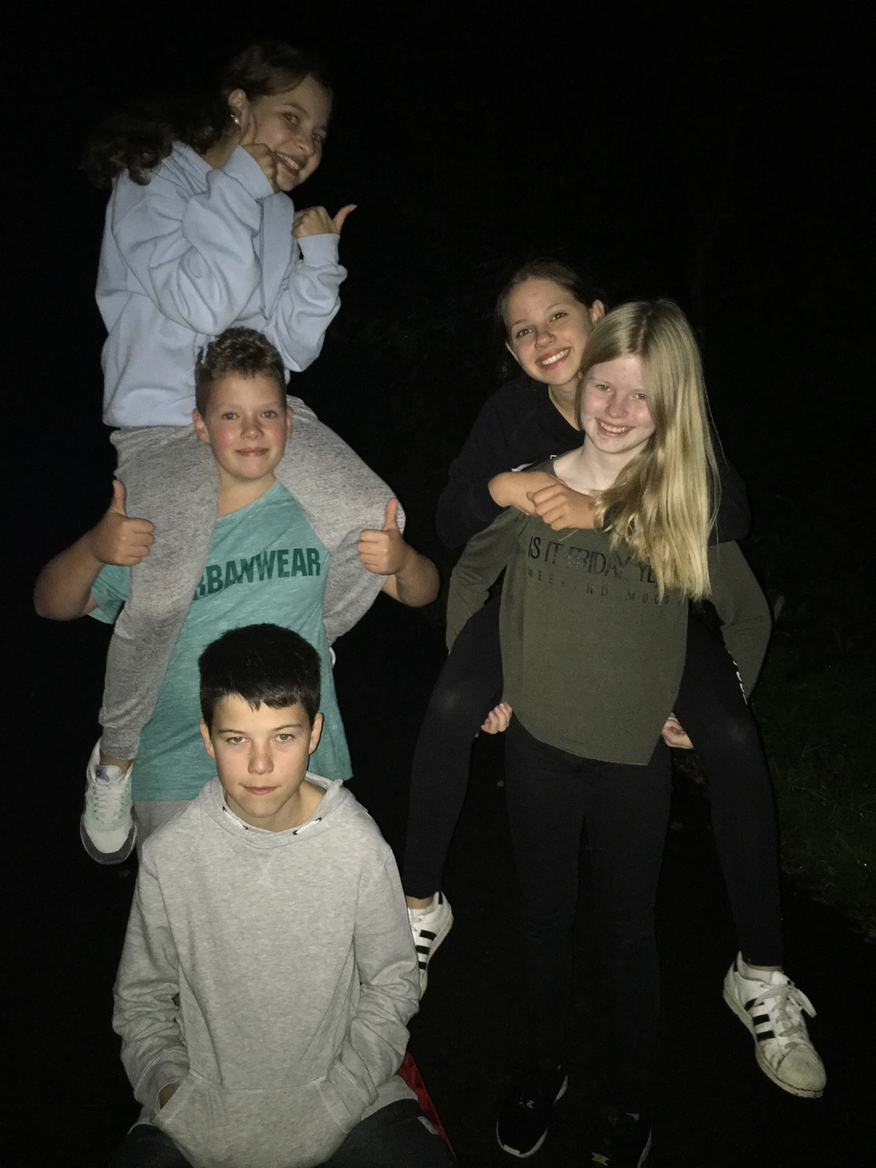 Ein weiterer Höhepunkt war die Nachtwanderung. Bei Mondschein und Nebel konnte man sich im Wald – und vor allem auf dem Streckenabschnitt, der allein gegangen werden sollte – sehr gruseln.