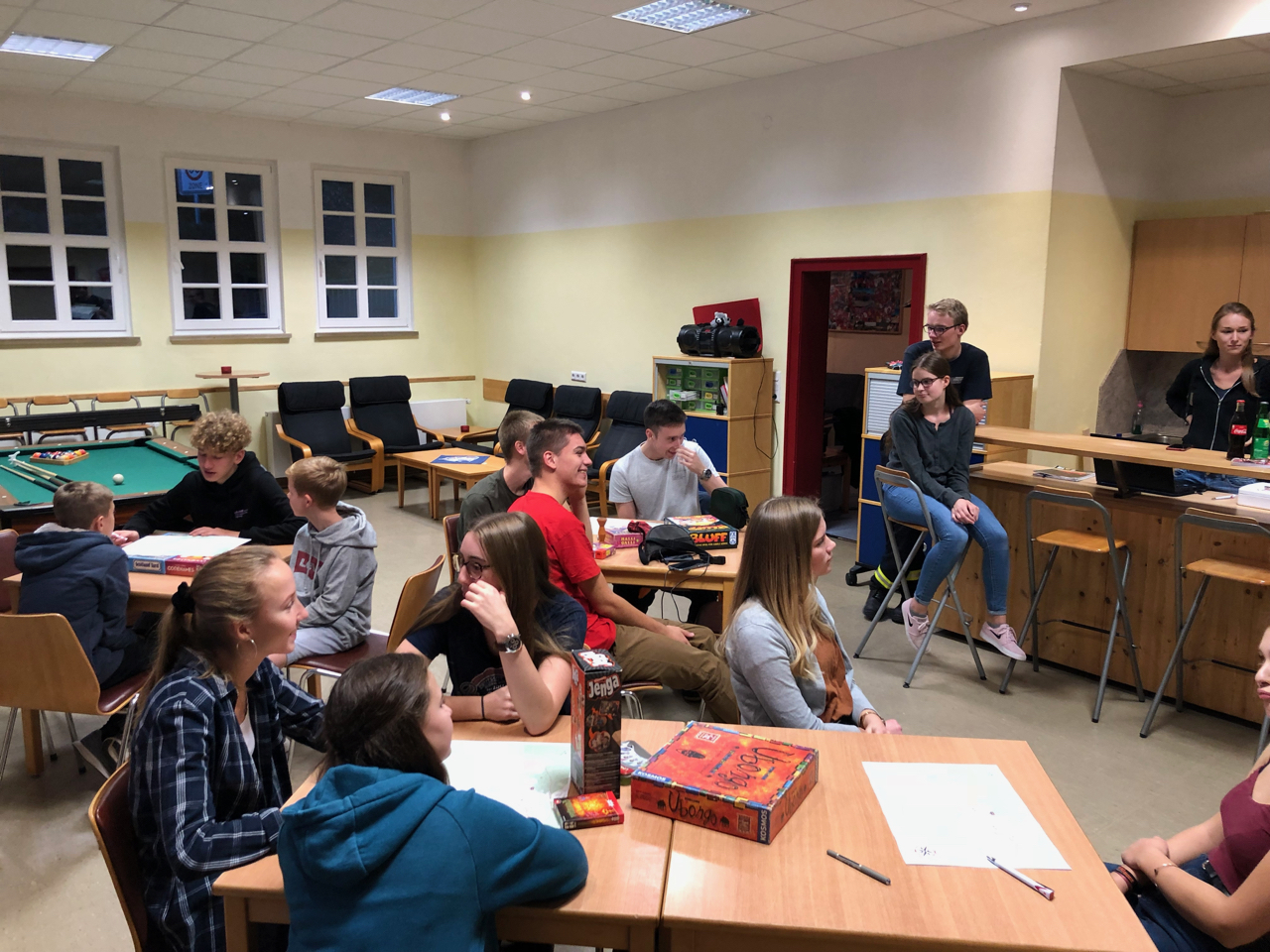 Danach hatten alle noch genug Zeit, im Gemeindehaus gemütlich etwas zu Essen, zu Trinken und zu Spielen. So wurden einige neue Gesellschaftsspiele getestet und auch der Billardtisch wurde fleißig genutzt. Der gemeinsame Abendschluss beendete Kom’ma für den Oktober.