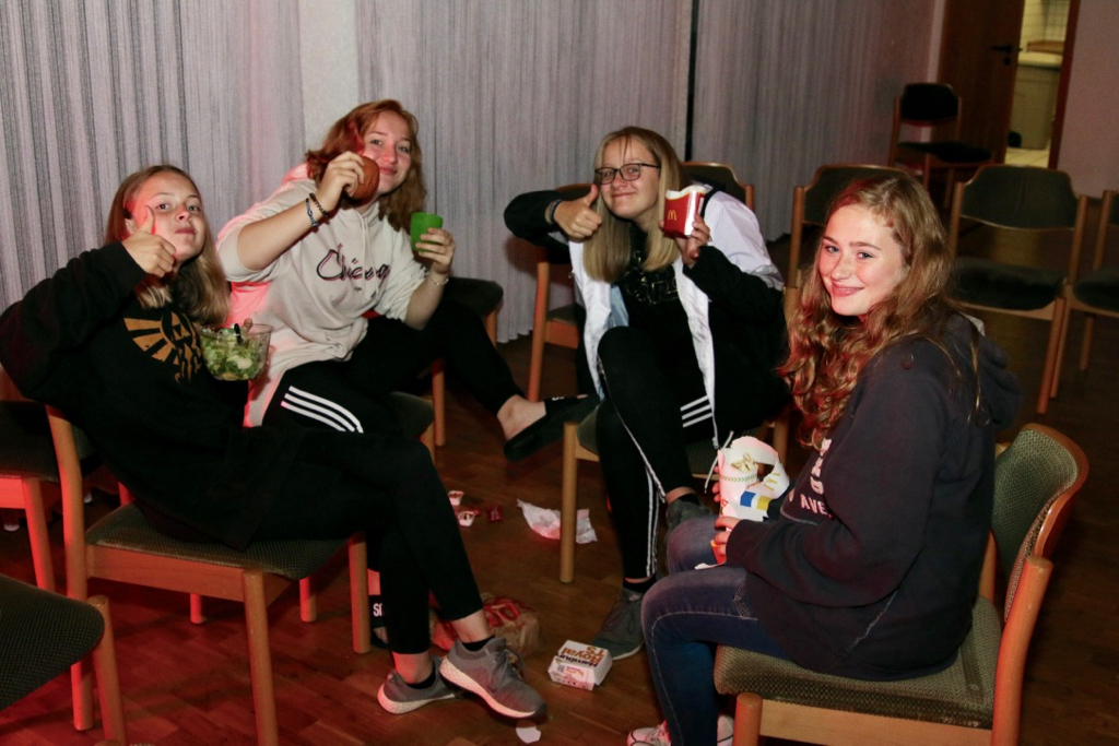 Die diesjährige Konfi-Freizeit war ein riesen Erfolg, der einem noch lange im Gedächtnis bleiben wird. Am Freitag startete das lang ersehnte Wochenende von der Walbach in die traditionelle und aus den Vorjahren bekannte Jugendherberge in Netphen-Beienbach. Nachdem die Zimmer bezogen und der erste Hunger gestillt waren, fanden die sogenannten „New Games“ statt. In Spielen wie Kettenfangen oder Riesen-Volleyball, lernten sich die Konfis kennen, hatten viel Spaß und bewiesen Stärke und Koordination im Team. So wie jeden Abend, folgten ein schöner Abendschluss und eine meist kurze Nacht.