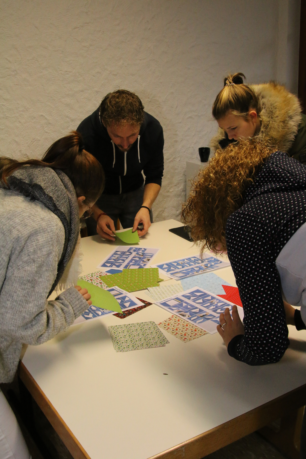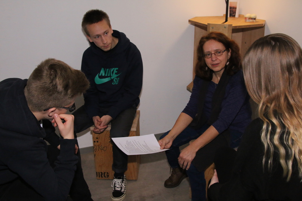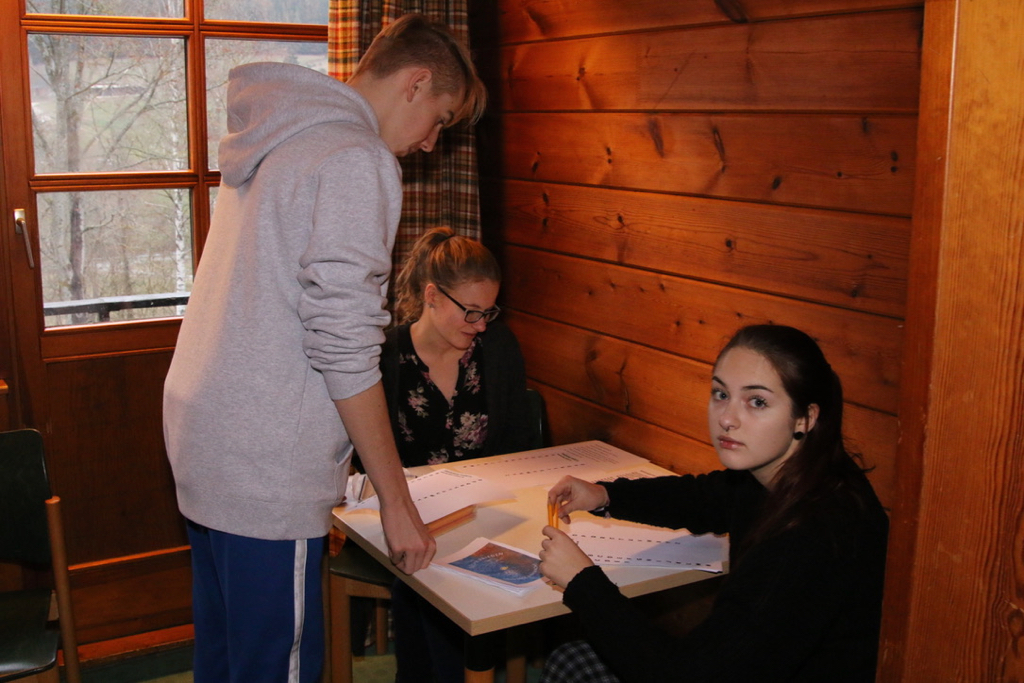 Freitagabend bezogen wir unser eigenes Haus im Abenteuerdorf Wittgenstein, das in der Nähe von Bad Berleburg am Waldrand gelegen ist. Samstag starteten wir dann mit Workshops zur Jahreslosung „Suche den Frieden und jage ihm nach.“ (Psalm 34, 15). Dieser näherten wir uns in neun Stationen auf ganz unterschiedliche Weise – zum Beispiel indem wir auf einer Landkarte diejenigen Länder markierten, in denen gerade Krieg herrscht. Eine weitere Aufgabe war, das Wort „Frieden“ bildlich zu erklären.